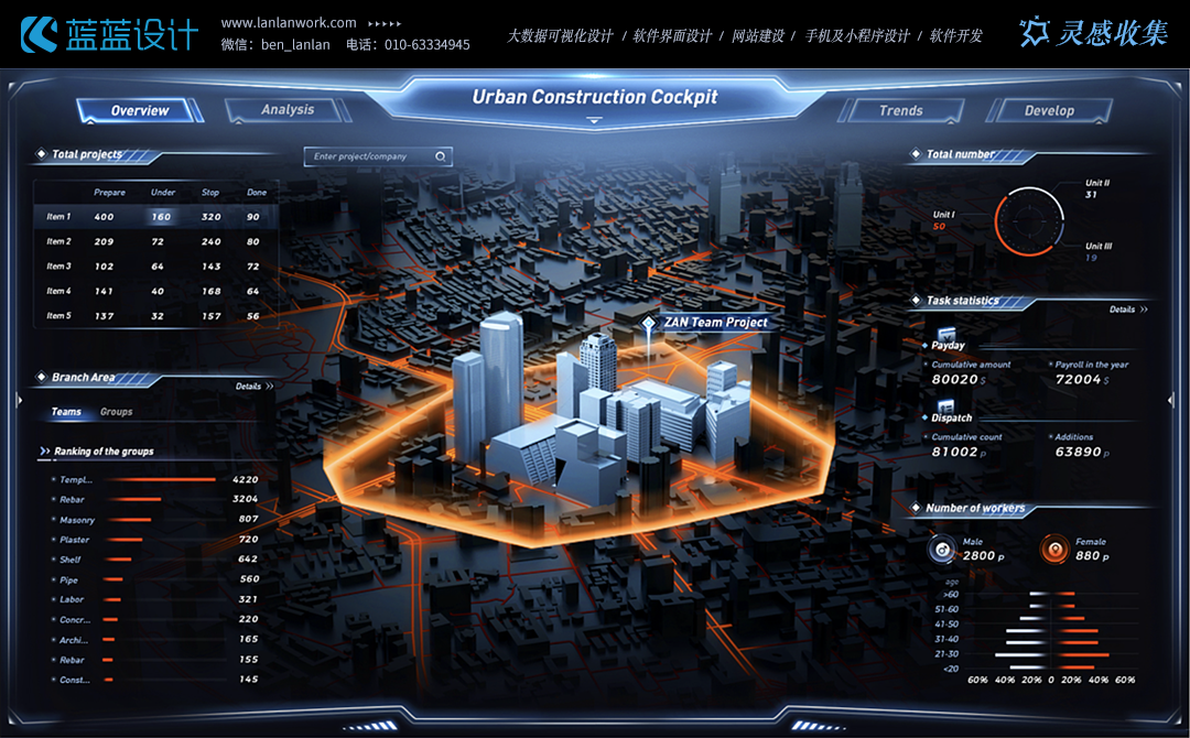 大屏設(shè)計(jì)的關(guān)鍵在于如何將復(fù)雜的數(shù)據(jù)以直觀、易懂的方式呈現(xiàn)出來。因此,選擇合適的可視化組件至關(guān)重要。常見的可視化組件包括圖表(如柱狀圖、折線圖)、地圖、視頻、文本等。設(shè)計(jì)者應(yīng)根據(jù)展示內(nèi)容和園區(qū)特點(diǎn),精準(zhǔn)選擇可視化組件,以達(dá)到最佳的展示效果。例如,對(duì)于環(huán)境監(jiān)測(cè)數(shù)據(jù),可采用折線圖展示變化趨勢(shì);對(duì)于園區(qū)布局,則可使用地圖組件進(jìn)行直觀展示。