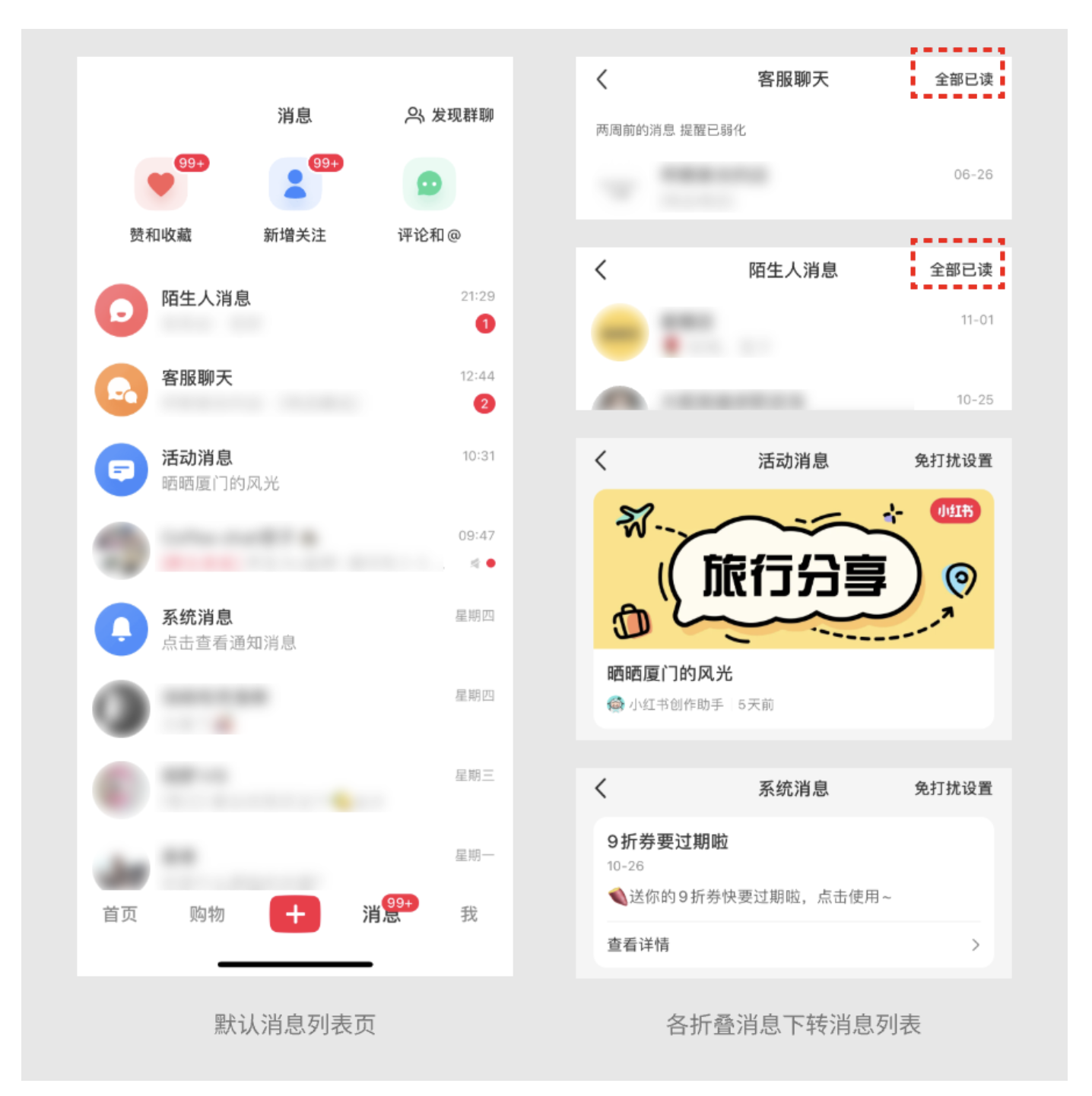 在所有 APP 里,小紅書的 “一鍵已讀” 最細(xì)膩 —— 它沒做 “全局一鍵清”,而是分場景設(shè)計,把 “該留的消息” 和 “該清的消息” 分得明明白白。