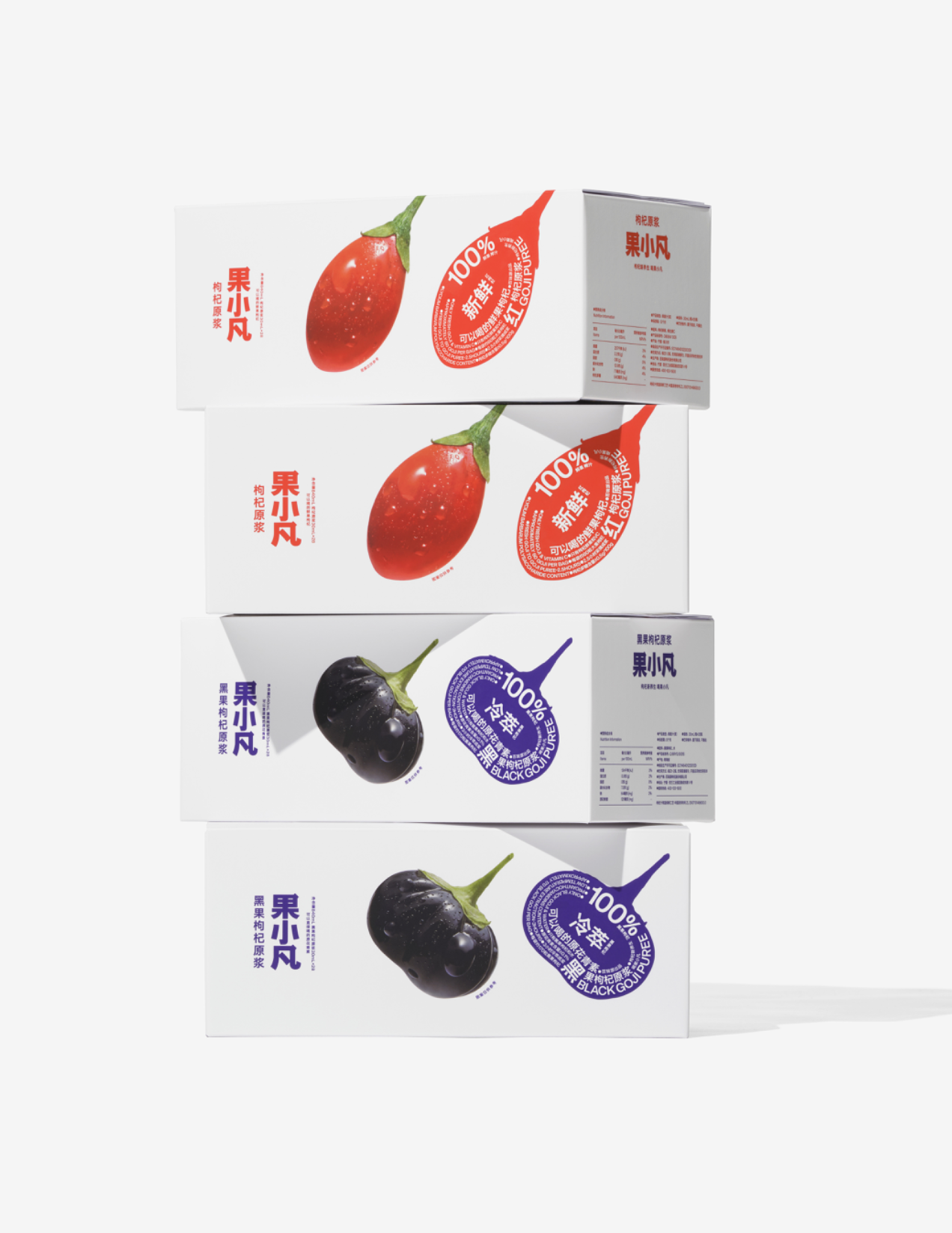 在信息過載的消費場景中,復雜的包裝設計往往會分散消費者注意力,而 “Less is more”(少即是多)的設計理念,正成為食品包裝的主流趨勢。百瑞源旗下 “果小凡” 枸杞原漿的包裝設計,便是這一理念的絕佳詮釋 —— 它摒棄冗余元素,以純粹的設計語言聚焦產(chǎn)品核心,讓消費者一眼讀懂價值。本文將結(jié)合這款案例,拆解簡約包裝的設計邏輯與可復用技巧。
